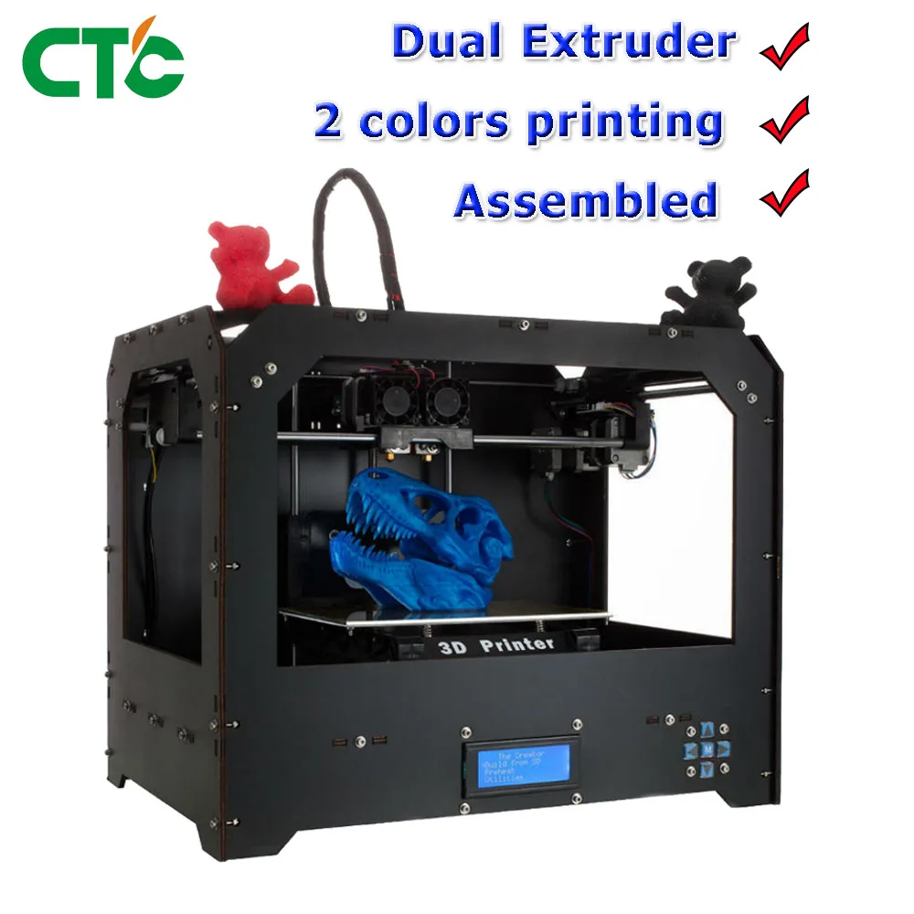 CTC 3D Printer Dual Extruder + Dual nozzle Two Color Printing 3d Printer / send 0.3KG Abs or Pla Spools for free US Stock